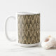Woven pattern in shades of grayish green. Kaleidoscopic pattern resembles snake skin, with its converging chevron shapes.
