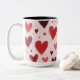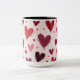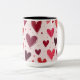 a seamless modern art pattern featuring abstract heart shapes and symbols of love, with bold lines and playful, overlapping forms. Use vibrant colours like red, pink, and purple, alongside soft gradients and textures for a dynamic, expressive look. Each heart should feel unique, with variations in size and style to convey a contemporary and artistic interpretation of love.