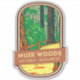 A vintage travel badge design of redwood trees in Muir Woods National Monument in Golden Gate National Recreation Area, San Francisco , California, United States.
