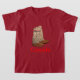 The t-shirt feels and looks great quality, a good thick cotton. It will be a little big for my son, but that means he will be able to wear it and not out grow it too soon. The print was as described on the order when personalised. True size, shape and colour T-shirt- thanks.