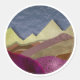 An abstract landscape with unique colours and textures showing a mountain scene in shades of purple, tan, beige, and brown.