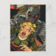 Mulher fugindo de robô descontrolado. Caseado em quadrinhos da década de 40.