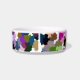 This is a heavy, durable bowl decorated with Tibbies of many colors, the perfect size for hungry/thirsty Tibs. The design is interesting and printing clear.