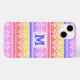 Monogrammed Nordic multi-colour purple, pink, blue and yellow snowflake faux woollen knit sweater pattern cell phone case in your choice of font styles. OPTIONS: The sample is shown on the iPhone 14--other phone models and case styles are available on the ordering page. ASSISTANCE: For help with design modification or personalisation, colour change or transferring the design to another pillow style or another product, contact the designer BEFORE ORDERING via the Zazzle Chat MESSAGE tab below or email makeitaboutyoustore@gmail.com.