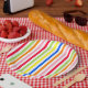 Multi Coloured Red Yellow pink orange Green blue candy Stripe lines on white background