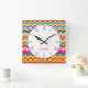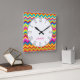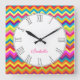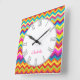 Customise this colourful zigzag patterned clock with your name. This example reads Isabella. Designed by Sarah Trett.