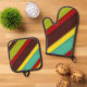 Multi-Coloured Diagonal Stripes Oven Mitt & Pot Holder Set