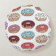 Multi-coloured doughnuts hand drawn seamless patte round cushion
