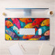 LOVE this desk mat! It's large! It fits across my desk. No need for a small mouse pad now! Color and print are excellent. Quality seems to be excellent too. Delivery was about 3 days sooner than expected. I think this is one of my favorite Zazzle products! Excellent. The color is vibrant and true to what I expected.