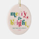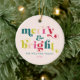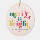 Merry & Bright! This multi-coloured modern Christmas ornament has a trendy retro serif font and a matching light pink background. Personalise it with your special holiday message and the names of your family members on the back. Celebrate the holidays with this joyful, cheerful collection with your family and your children with these perfect gifts for your loved ones.