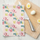 Merry & Bright! This bright and multi-coloured modern Christmas kitchen towel has a cute, fun, and trendy retro serif font in green lime green, pink, hot pink and red and a light pink background. Celebrate the holidays with this joyful, cheerful collection with your family and your children with these perfect gifts for your loved ones.
