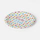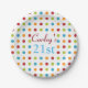 Multi-coloured polka dot pattern on personalised paper party plates. Personalise for Birthdays or any occasion.