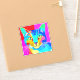 A retro, pop art style, cat portrait in vivid, primary colours of magenta, cyan, blue and yellow
