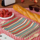 Trendy multicolored stripe pattern in red, blue, orange and green.