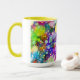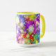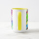 A burst of colour two toned coffee mug with yellow interior and handle.