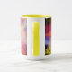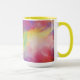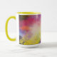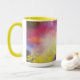 A burst of colour two toned coffee mug with yellow interior and handle.