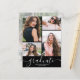 Add your favourite photos to these graduation party invitation postcards featuring the words graduate and class of in chic lettering on a black school colour background on the front and your details on the back. More designs and colours done in our collection.