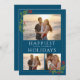 Portrait orientated multi photo card with colourful Christmas foliage border.