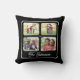 Multi Photo Family Name Elegant Calligraphy Black Cushion