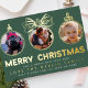 Multi Photo Green Gold Merry Christmas Happy Foil Holiday Card