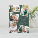 Modern minimal stylish multi photo family home decor elegant script text peace, joy and love Holiday Christmas card and party invitation. Modern on trend green colour can be changed.
