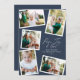 Modern minimal stylish multi photo family home decor elegant script text peace, joy and love Holiday Christmas card and party invitation. Modern on trend navy blue colour can be changed.