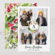Multi photo watercolor floral and foliage merry christmas Holiday card. Beautiful watercolour painted foliage and modern script text. Part of a collection.