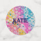 Modern art design featuring pink, blue, and yellow acrylic paint background and splatter with a white watercolor bubble wrap print. Customisable.