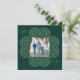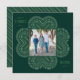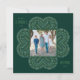 A modern St. Patrick's Day photo card with a bold, multicolor clover design in various shades of green. The clover design perfectly frames the customer photo, and there is space to add a custom greeting in the top-left and bottom-right corners. The back of the card features a coordinating diagonal stripe pattern.