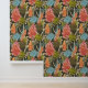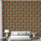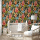 Transform your space with this striking wallpaper, adorned with an abstract African botanical pattern. Featuring vibrant shades of orange, red, blue, and green against a dark background, this design adds depth and richness to any room. Perfect for creating a bold statement wall or an immersive atmosphere, ideal for DIY home decorators.