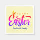Multicolor Happy Easter- rainbow colour happy easter lettering with bunny ears yellow background