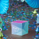 Sharp and modern Jewel Tones Wedding Favour Boxes featuring a multicolor (blue, purple, pink, and turquoise) funky geometric triangle background. This chic and simple design is a unique choice for a modern wedding. Easy to customise with your wedding details. Click "Customise It" to find more personalisation options.