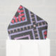 Modern trendy tissue paper design featuring a seamless pattern made of geometric shapes in dark grey, blue, red, pink and beige.