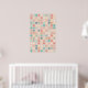 A geometric pattern of multicolor squares in a color palette of pink, coral, turquoise, green, yellow and beige.
