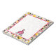 A notepad for teachers featuring a green, yellow, pink & black paint splatter background. Personalise with your name under Pink Schoolhouse.