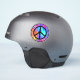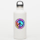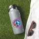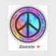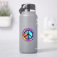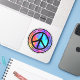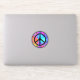 Hippie sticker - peace sign with surrounding text on a multicolored background.