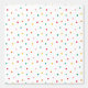 This lively pattern features an array of multicolored polka dots evenly distributed across a white background. The dots come in a playful palette of red, green, yellow, pink, and orange, creating a bright and cheerful design. The simplicity of the polka dot arrangement combined with the vibrant colours gives the pattern a fun, retro feel, perfect for adding a pop of colour to any setting.
