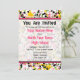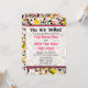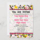 A unique graduation invitation featuring a black, yellow, green and pink paint splatter background with hot pink trim. Pink and black text. Personalise with details of your own event. Opposite side features solid paint splatter design. Text inside pink circle shaped frame reads "Class of 2011" in pink and black with an illustration of a black graduation cap. Great for the art school bound graduate. Look for matching items in the "graduation shop" section of The Pink Schoolhouse store.