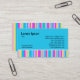 An multi-coloured stripy profile / business card template ready to be customised. the front has a stripy footer area. The back is decorated with the full stripy design.