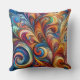 The image features a colorful throw pillow adorned with vibrant swirls. The design showcases a playful motif, making it an eye-catching addition to any space. This cushion is made from fabric that combines style and comfort.