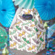 A group of four different coloured bras that are in a repeating, scattered pattern.