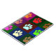 A colourful dog paw print pattern in pink, orange, blue, yellow and other colours.