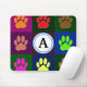Multicolored Dog Paw Print Pattern With Monogram Mouse Pad