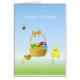 Multicolored Easter eggs, bee and flowers Happy Holidays Card. Text can be personalised.
