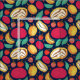 Bright print with multicolored fruits on a blue background