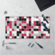 This desk mat features a multicolored geometric pattern in Viva Magenta, black, grey, and white. The squares are coloured in random order and you can edit the colours in the Design tool.