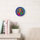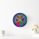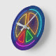 Multicolored neon peace sign symbol round clock