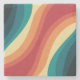Multicolored retro style waves geometrical pattern illustration with orange, red, beige, blue and turquoise wavy stripes decoration on dark blue background