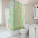 Multicolored whimsical and colourful shower curtain. Shimmery and many coloured pattern.