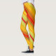 Leggings featuring a festive striped pattern in warm red, orange, green and yellow.